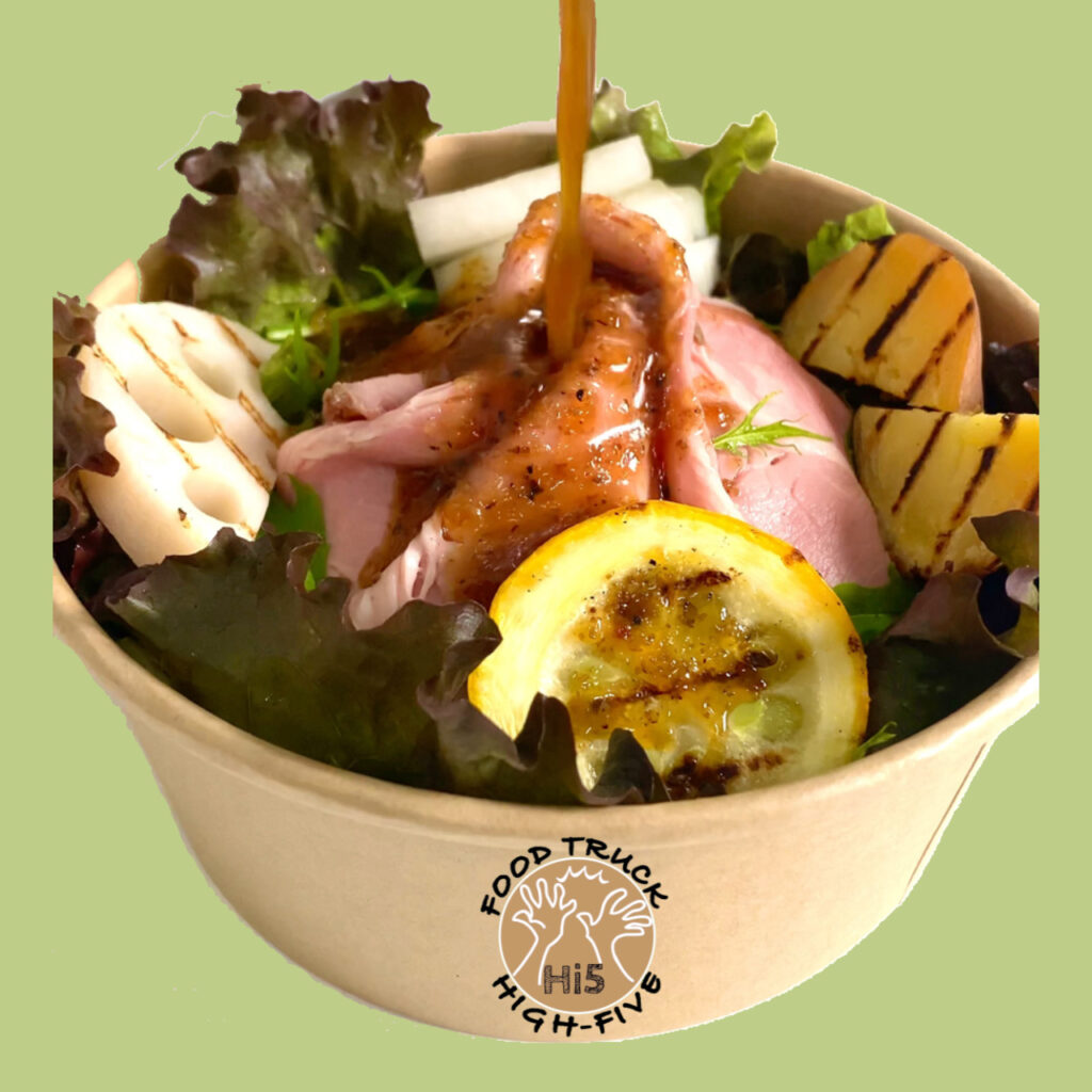 FOOD TRUCK HIGH-FIVE キッチンカー 2026.02.17 FOOD TRUCK HIGH-FIVE 柔らかジューシーなお肉と、新鮮な横須賀野菜をふんだんに盛り込んだ丼もののキッチンカー。彩り豊かなだけではなくボリュームもしっかりあり、自家製のタレが決め手の唯一無二の商品です。お手軽に召し上がっていただける牛串のご用意もございます。 MENUローストポーク丼 900円牛ハラミステーキ丼 1400円ミスジステーキ丼 1500円中落ちカルビ串 500円ハラミ串 600円牛タン串 700円