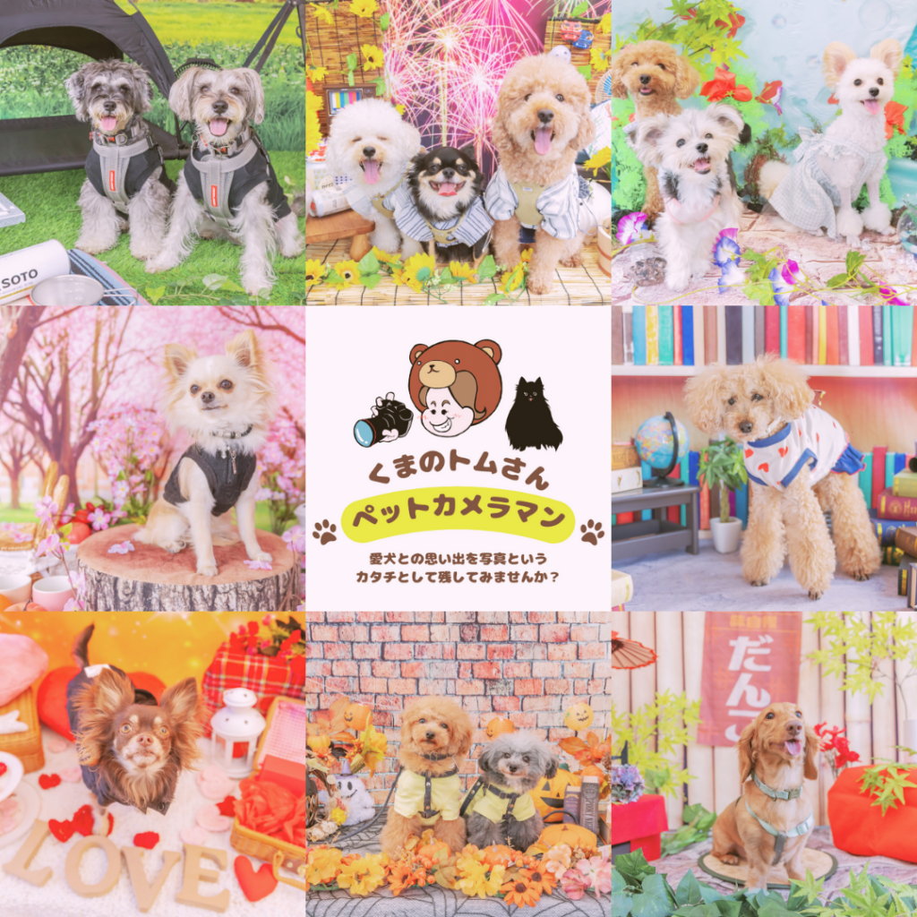 くまのトムさん【ワンちゃん撮影】 マルシェ 2026.01.30 くまのトムさん【ワンちゃん撮影】 季節やイベントに合わせたフォトブースで、ワンちゃんの【今この瞬間】を丁寧に切り取るワンちゃん向けのフォトブース撮影サービスです。撮るだけではなく、一緒に楽しめる体験を大切にしています。撮影が初めての子でも、安心して過ごせる空間づくりを心がけています。大切な思い出づくりをお手伝いできれば嬉しいです。