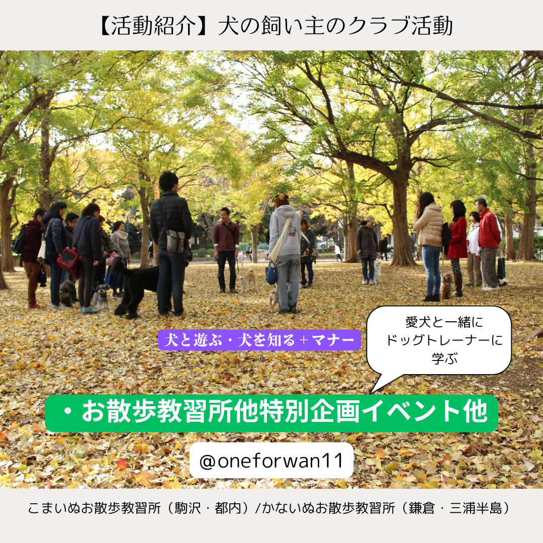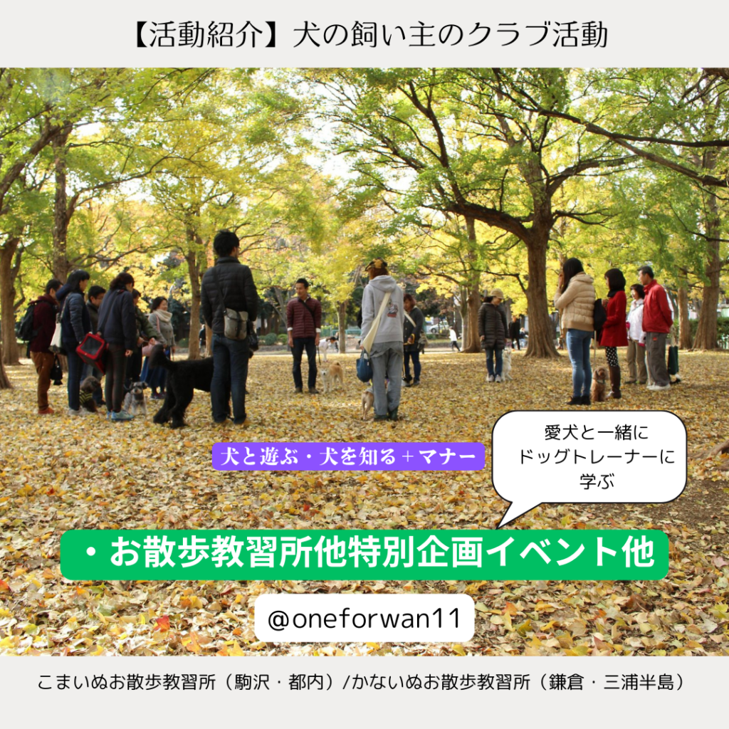 東京、神奈川を中心に、飼い主と愛犬が一緒に楽しく参加できる講座・イベント、チャリティーウオークなど幅広く活動しています。