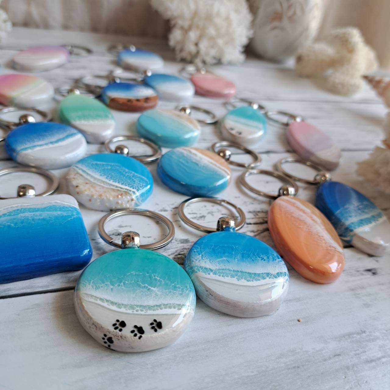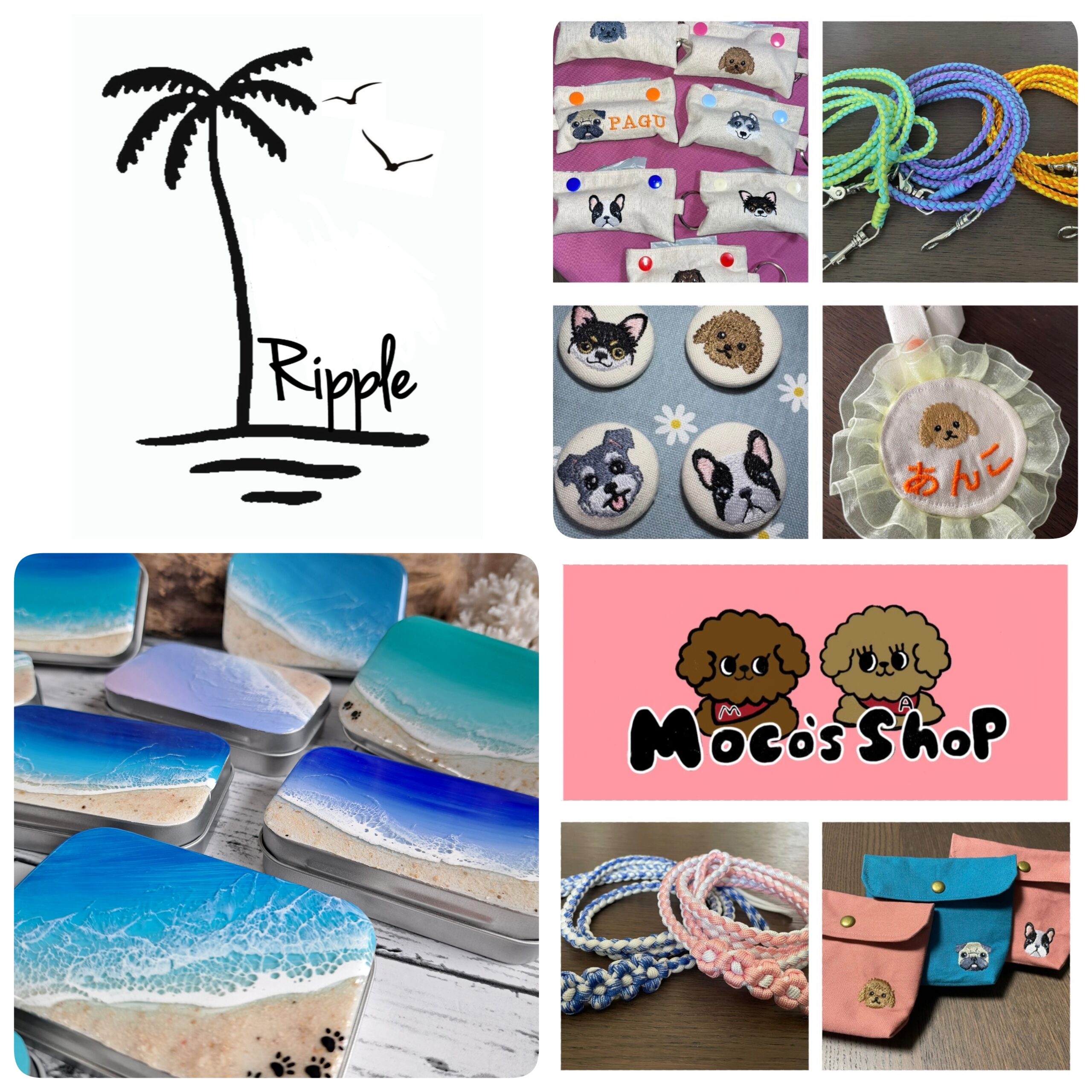 Ripple-波家- マルシェ 2025.10.29 Ripple-波家- オーシャンレジンアートのインテリア雑貨ペットお散歩グッズやうちのコボードなどなど…三浦半島の海や空をイメージしたオリジナル一点物!自然の一瞬しか見れない色や波を表現しています。