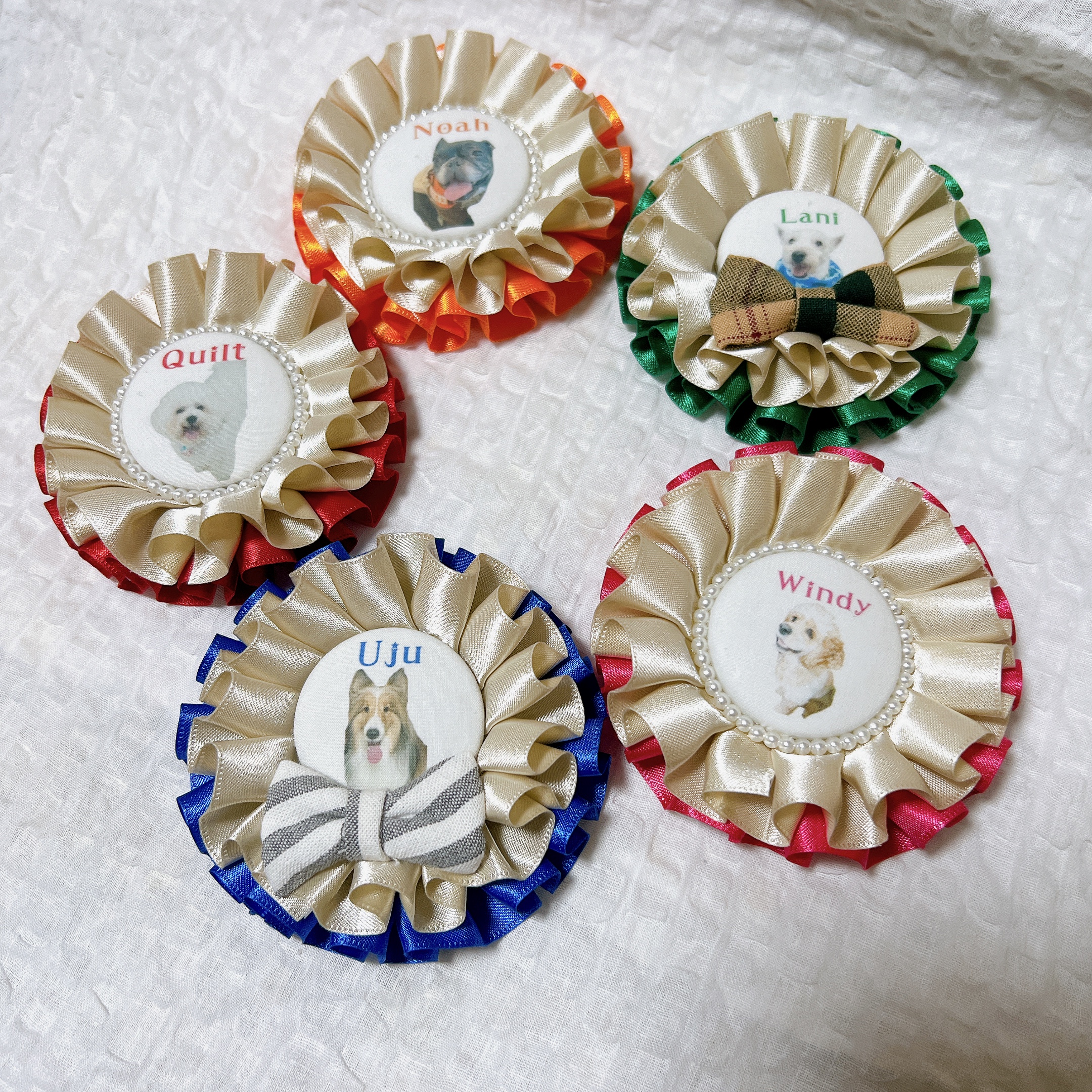 カラーサンプルの40色からデザインサイズは3サイズを選んでいただき、当日愛犬のイメージを伺いながらオーダーをお受けしています。