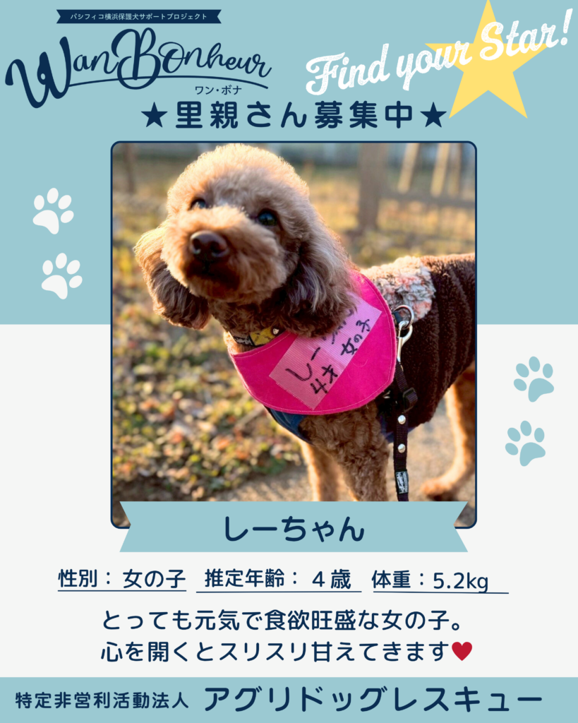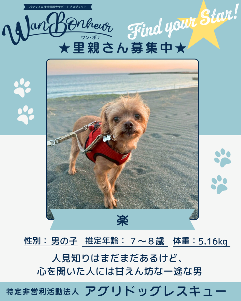 2007年に設立し、2021年より特定非営利活動法人アグリドッグレスキューとして『全ての犬を笑顔に』を信念に 千葉、埼玉、東京、神奈川、茨城に活動の場を広げ 健康な子だけではなく 病気の子も高齢の子も引出し幸せに繋いでいます。