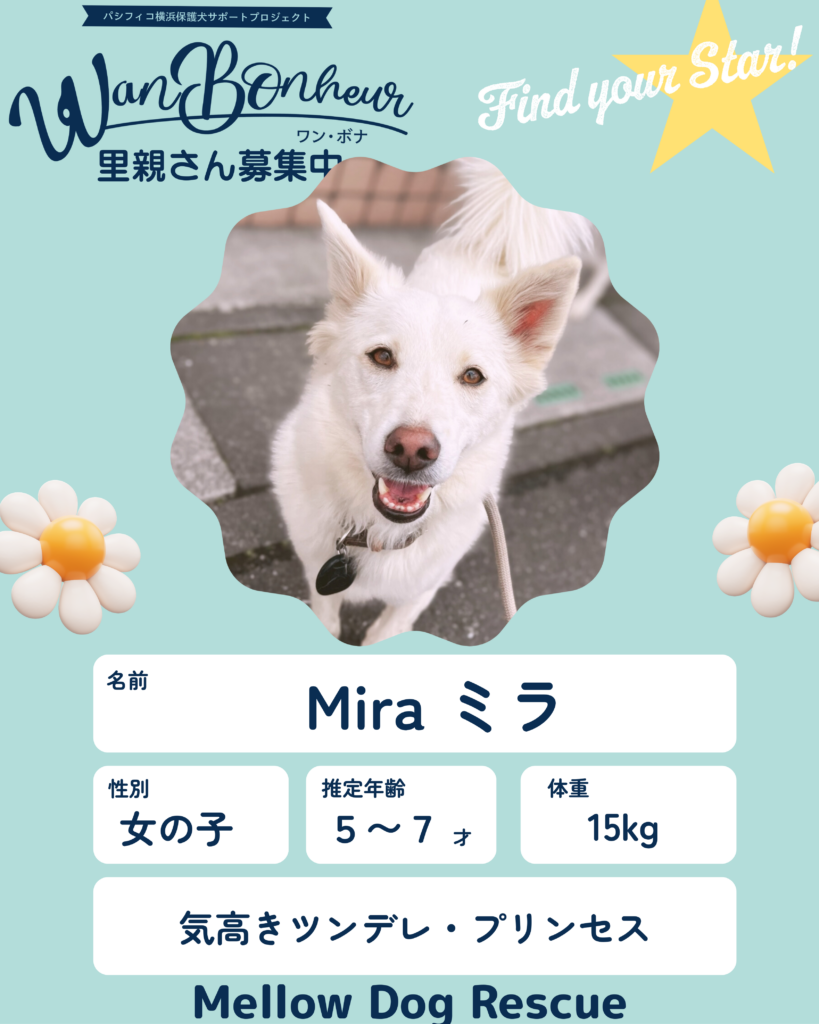 Mellow Dog Rescue(メロードッグレスキュー)は、成犬の野犬を中心に、一般譲渡が難しい犬たちの保護・トレーニング・譲渡を行っている小さなシェルターです。人間中心ではなく、動物たちの目線からも幸せを考える大切さを社会に広げるため、学校や企業でのお話会や講演活動にも取り組んでいます。