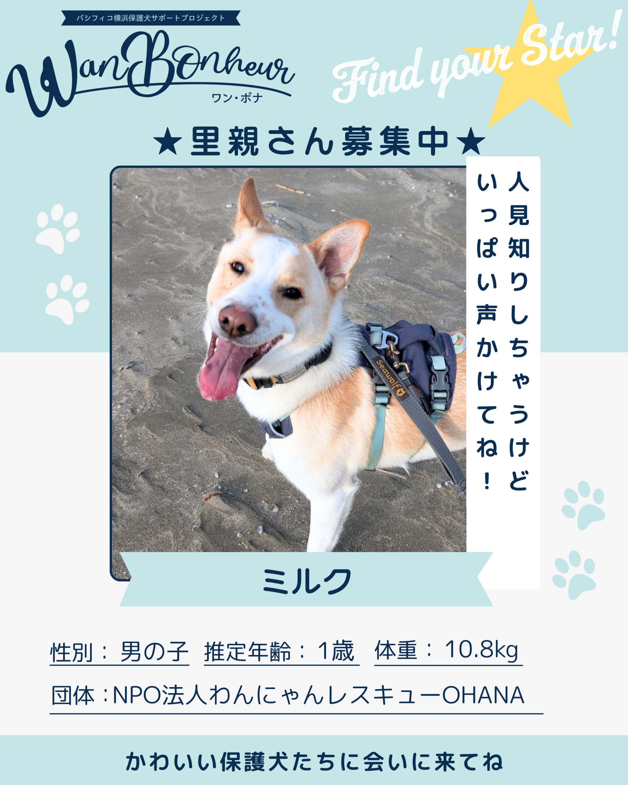 ★ここで紹介する保護犬たちは、体調や都合により当日参加できなくなる可能性もあります。詳しくは会場で保護団体スタッフに直接お問い合わせください。