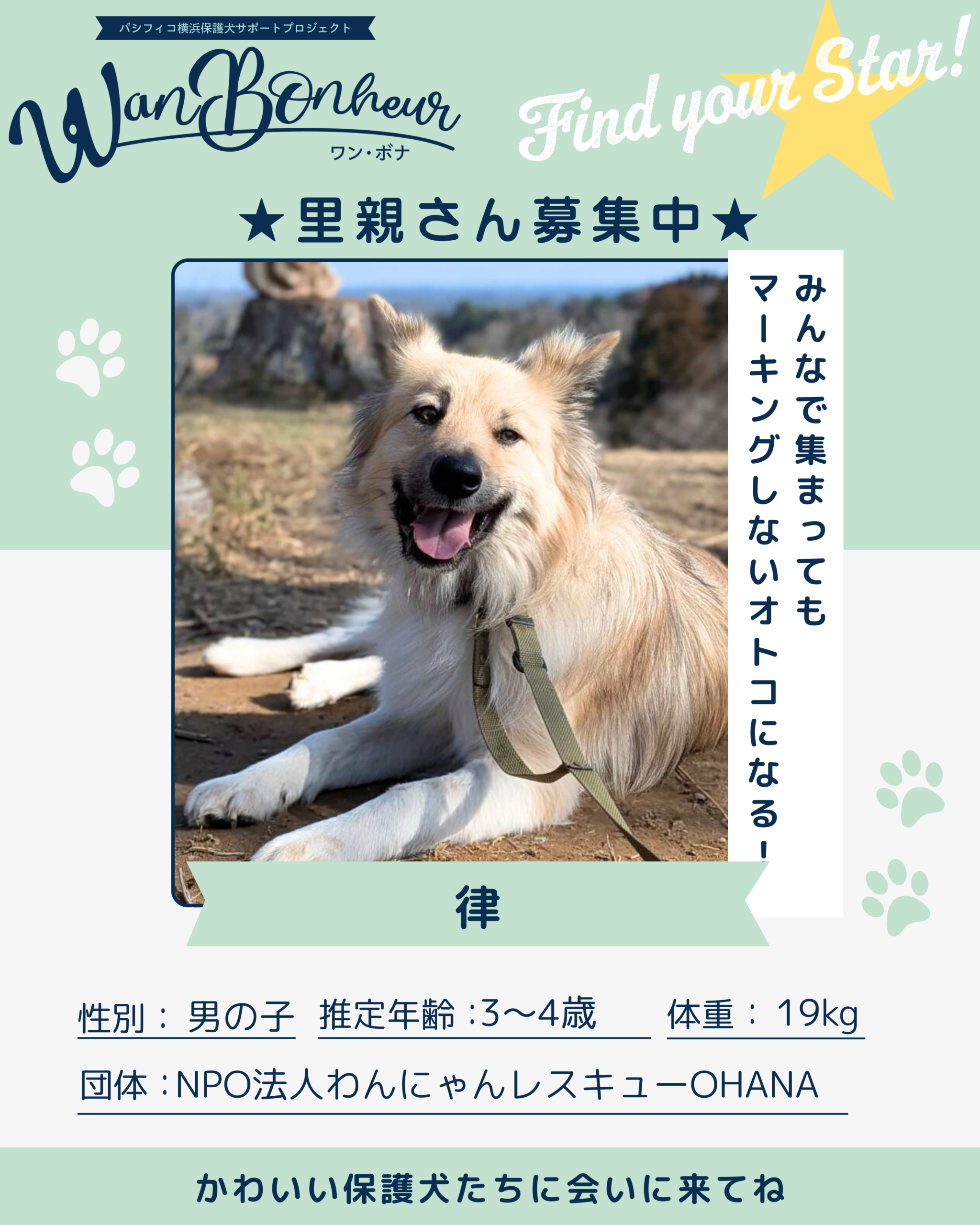 - 保護犬には保護後に受けている健診では発見できない疾患が潜在している可能性があることを承諾して頂ける方。